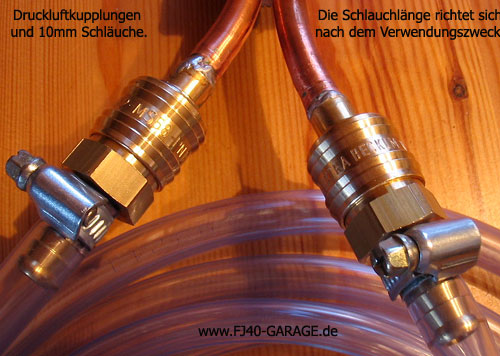 Ich habe mich wegen der zu erwartenden Temperaturen für diese Lösung mit den Druckluftkupplungen entschieden.Jetzt weiss man auch wofür die Schlauchschellen