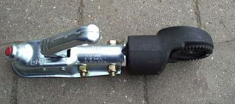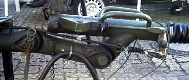 Das Kuppelteil der Auflaufbremse ist über ein Gestänge mit der Bremsanlage verbunden, leider wird die Kuppelhöhe durch diese Deichselvariante doch