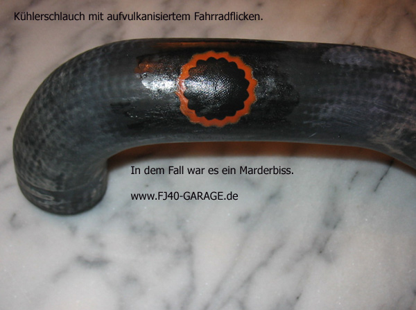 Ach ja....... die Notreparatur eines Kühlerschlauchs ist auch kein Hexenwerk. In diesem Fall hatte sich ein Marder in das gute Stück verbissen und ihn mit