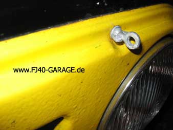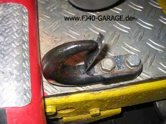 Abschlepphaken mit Sicherheitsklappe, eines der wenigen verbliebenen Original Toyota Zubehörteile.