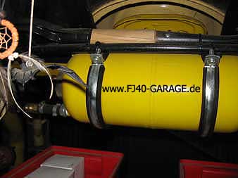 Zusatzlufttank am Überrollbügel,macht das befüllen der Reifen noch etwas leichter und stellt den Heckanschluss sicher. Schaufel und